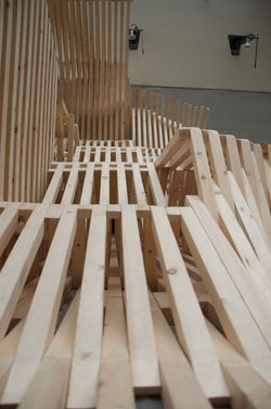 Two x Two was a design + build project the entire second year architecture students at Iowa State University worked on collectively. The challenge we were aiming to tackle was the lack of public interaction in the atrium space in the College of Design at Iowa State University. We combined 5 different studio's takes on this solution and used two x two boards in a scissor pattern to make new public spaces that could be used by a single person, small group, or large group. After constructing, the users of the space asked us to keep the installation in the atrium for longer, and Rieman Gardens asked us to use it at their gardens. Additionally, our build was on ArchDaily's "The Best Student Design-Build Projects Worldwide 2016". (https://www.archdaily.com/794566/the-best-student-design-build-projects-worldwide-2016)